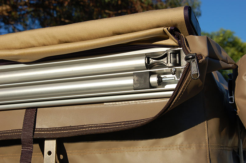 A roof rack mounted awning, measuring 2m wide and 2.1m out from the vehicle, which makes it an ideal size for all medium sized vehicles.