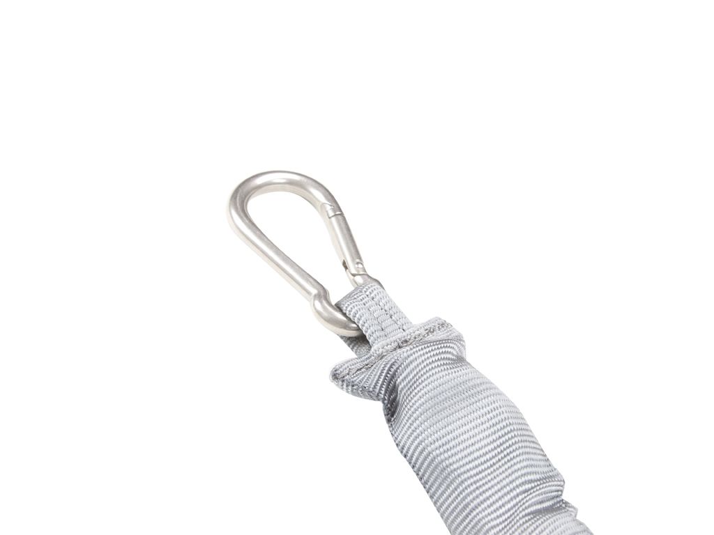 You can even remove the carabiner and loop the Stratchit Shortie through itself – to fasten around any roof rack rail, railing, pole, bumper, tire carrier…. etc.